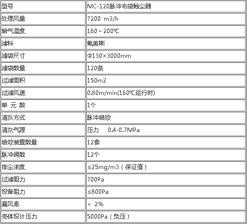 小型燃煤鍋爐除塵器的技術參數: